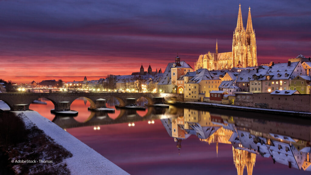 Der Vormittag steht Ihnen zur freien Verfügung – starten Sie entspannt ins neue Jahr. Wer möchte, kann am Vormittag die Neujahrsmesse in Mariä Himmelfahrt in Rieden besuchen. Am Nachmittag fahren Sie nach Regensburg und erkunden die am besten erhaltene mittelalterliche Großstadt Deutschlands. Tauchen Sie bei einer Stadtführung in unterschiedliche Epochen der Stadt ein. Der Rundgang führt unter anderem zum Dom und zur Steinernen Brücke, zur Porta Praetoria und zum Alten Rathaus, zu Patrizierhäusern und Geschlechtertürmen und vielem mehr. Nach einer kurzen Freizeit besuchen Sie um 17:00 Uhr das Neujahrskonzert »Zwischen Welten« im Theater Regensburg. Anschließend geht es zurück zum Hotel, wo Sie gemeinsam das Abendessen einnehmen.